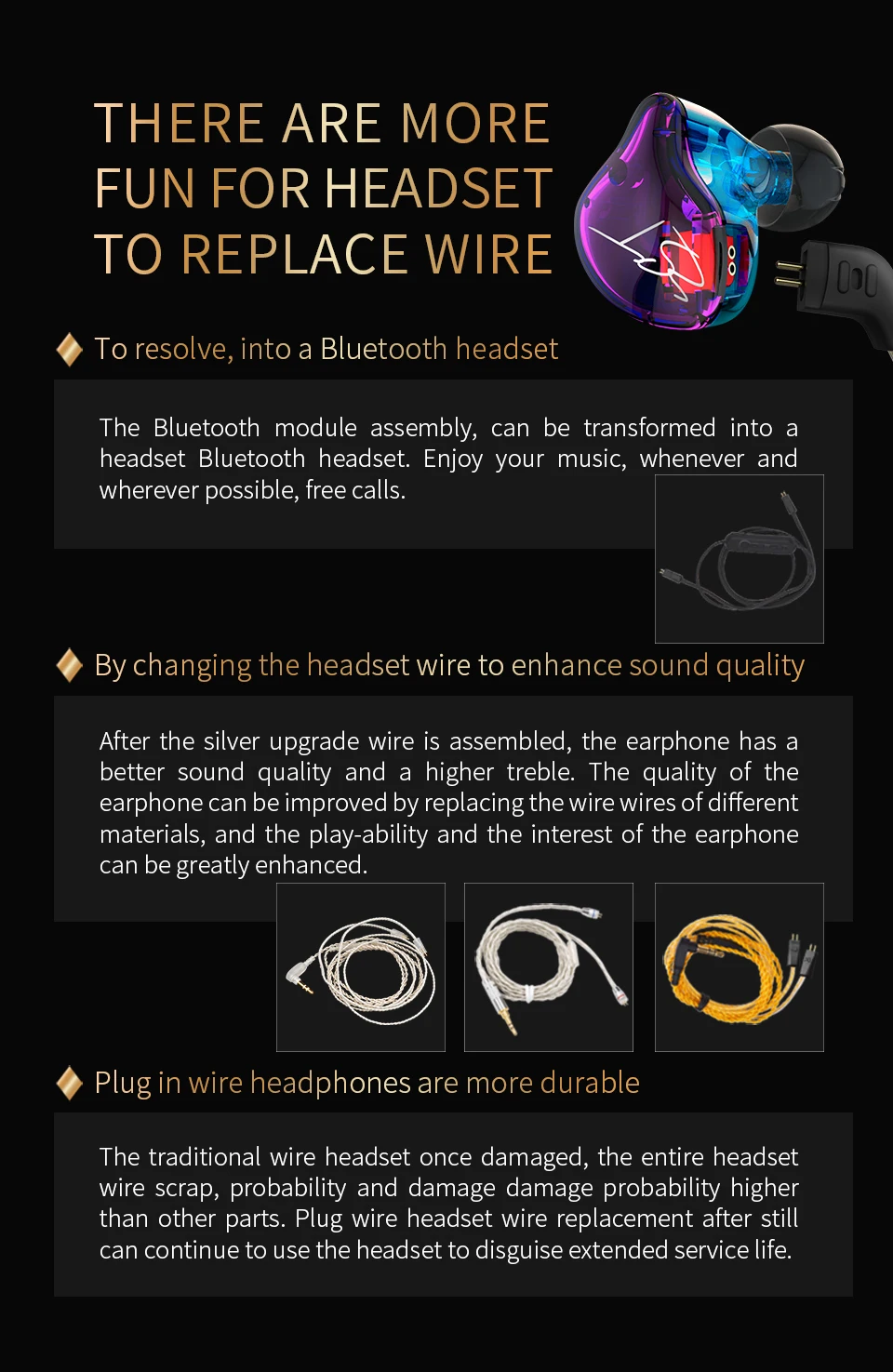 CCA Hot SaleCCA CA2 Earphones One Dynamic HIFI Bass Earbuds In Ear Monitor Headphones Sport …BUY NOWCCA CC1 1BA+1DD TWS Wireless Earphone Bluetooth 5.2 Headphones Sport Bass Profes…BUY NOWCCA CSN 1BA + 1DD Hybrid Noise Reduction Earphone In Ear Earbuds Monitor Headpho…BUY NOWCCA CKX 6BA + 1DD Hybrid Metal Earphones HIFI In Ear Monitor Bass Headset Noise …BUY NOWCCA CS16 16BA Units HIFI In Ear Metal Earphones Noise Cancelling Sport Headset H…BUY NOWCCA C10 Pro Metal Earphones Wired Headset Gaming Earbuds With Microphone Bass Ea…BUY NOWCCA KZ ZST Dual Driver Earphone Headset Dynamic And Armature Detachable Sports Cable Monitors Noise Isolating For Hifi MusicProduct Description:Name: KZ ZSTShell: SmoothType: In EarDriver: HybridSensitivty: 106dB ± 3dBImpendence: 10ohmFrequency response: 20 Hz – 40000 HzCable Length: 1.2mPlug Type: L BendingColor: black/purplePackage Contents: Eartips and EarphoneSilver Can Improve The Sound Quality, Not With A MicrophoneSuper Armature + Dynamic UnitThe armature + dynamic unit sound advantage complementary,give more details of music show.Congenital Advantage,The Experience Is Really HIFI!Super high moving iron unit with moving coil unit can not reach the treble performance ability,and the details of this high pitched are widelyused in the preparation of the size of the music.Driver Performance Is Tough, Bass Bursts Are More PowerfulThe four voice coil to bring a stronger driving force,low frequency shock powerful, so that the overall sense of hearing more infectious.Professional Division Of Physical Frequency Quality Tuning TechnologyPrecise internal acoustic structure design, as well as the fine tuning of the circuit can be the two pronunciation units each fine division of labor,Is responsible for the interpretation of the moving iron treble part, is responsible for the interpretation of the bass coil.The Lower The Internal Resistance Of Professional WireThe Design Of Human NatureOFC 6N professional headset custom wire signal effective transmission of up to 99.99%The standard of independent patent technology silicon tipsFrom the independent patent design of silicone earmuffs, compared with conventional earmuffs can more comfortable fit human ear,To sound more direct transmission of the eardrum, and get better quality experience.Solid ergonomic wear experience1.Your parcel will be sent in 2 days.2.The parcel is send by Aliexpress shipping. It is Aliexpress official shipping method, is guaranteed by Aliexpress and with stable and efficient delivery.3.The pacel also could track at this tracking web:global.cainiao.comWe do not uarantee delivery time on all international shipments due to differences in customs clearing times in individual countries, which may affect how quickly your product is inspected.Please note that buyers are responsible for all additional customs fees, brokerage fees, duties, and taxes for importation into your country.These additional fees may be collected at time of delivery. We will not refund shipping charges for refused shipments.The shipping cost does not include any import taxes, and buyers are responsible for customs duties.We do our best to serve our customers the best that we can.We will refund you if you return the items within 15 days of your receipt of the items for any reason.However, the buyer should make sure that the items returned are in their original conditions.If the items are damaged or lost when they are returned, the buyer will be responsible for such damage or loss, and we will not give the buyer a full refund.The buyer should try to file a claim with the logistic company to recover the cost of damage or loss.We offer the 1 month free replacement.The buyer will be responsible for the shipping fees to return the items.Buyers may request for a replacement within 15 days from your receipt of the product.The buyer should return the product in the original conditions to us and should bear the shipping costs for return.We also provide 12month free maintenance.The buyer should return the product in the original conditions to us and should bear the shipping costs for return.If any part is required to be replaced, the buyer should also pay for the costs of the parts to be replaced.Before returning the items, please confirm the return address and the logistics method with us. After you give the items to the logistic company, please send us the tracking number.As soon as we receive the items, we will repair or exchange them ASAP.Your satisfaction and positive feedback is very important to us.Please leave positive feedback and 5 stars if you are satisfied with our items and services.If you have any problems with our items or services, Please feel free to contact us first before you leave negative feedback.